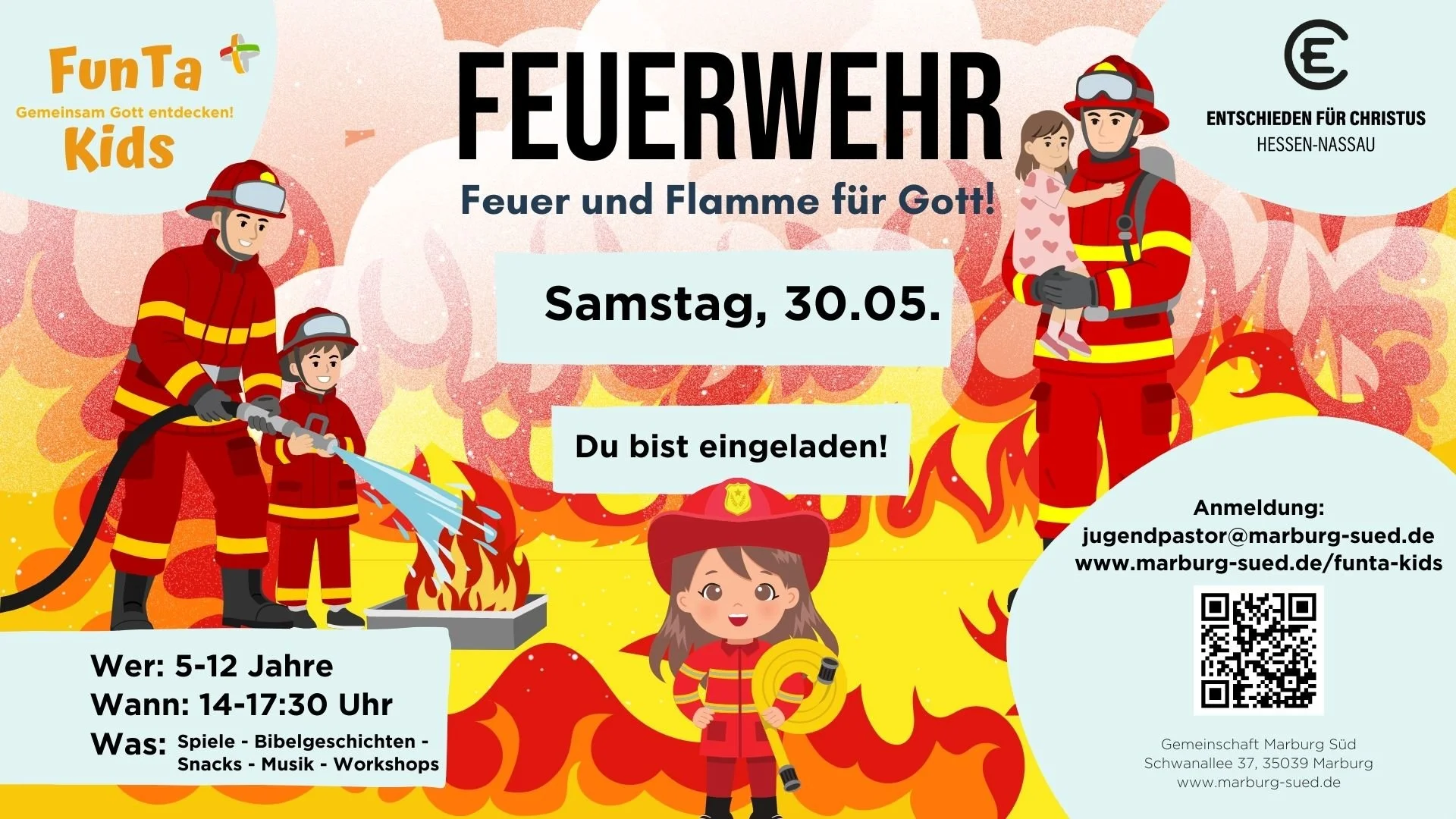 Klasse, dass Du dich bzw. deine Kids zum FunTa Kids Tag mit dem Thema “Feuerwehr - Feuer und Flamme für Gott” anmelden willst!